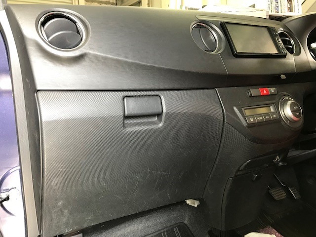 グローブボックスの裏側にヒューズボックスが見えます。