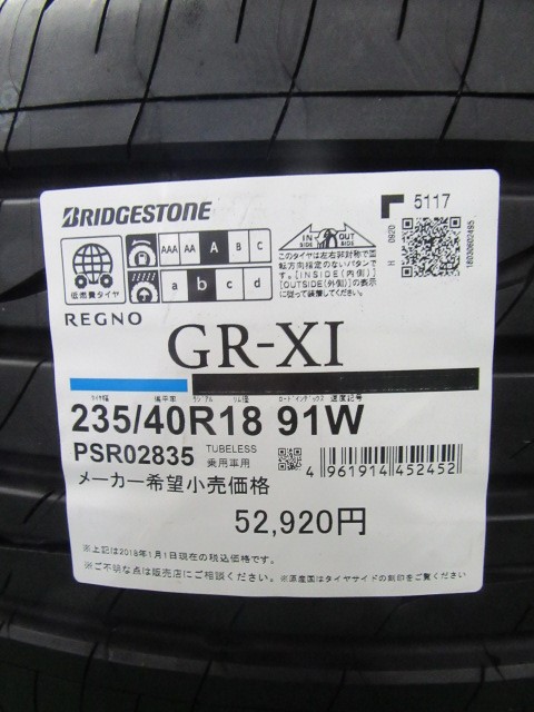 お取付けしたタイヤサイズは235/40R18です。