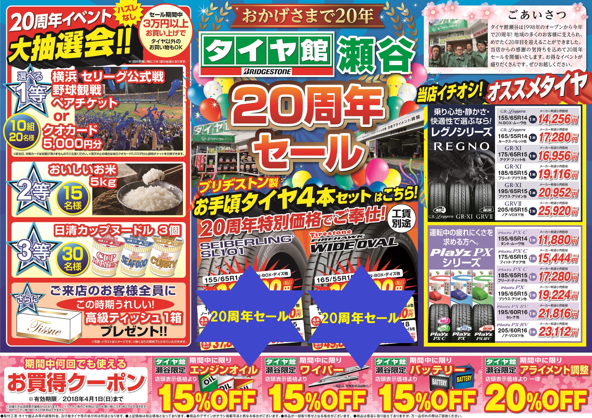 3月23日(金)~4月1日(日)まで『タイヤ館瀬谷 20周年セール』を開催いたします。