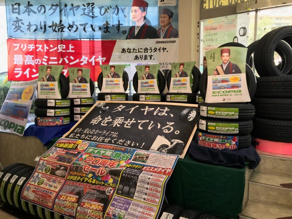 本日は水曜定休日ですが、ただいま当店では「タイヤ館瀬谷20周年セール」を開催中です。
