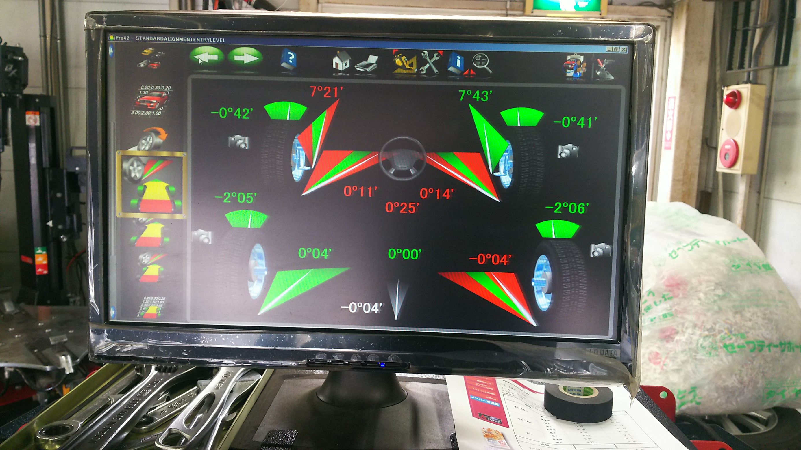 この車はフロントのトー調整とリアのトー調整ができます。