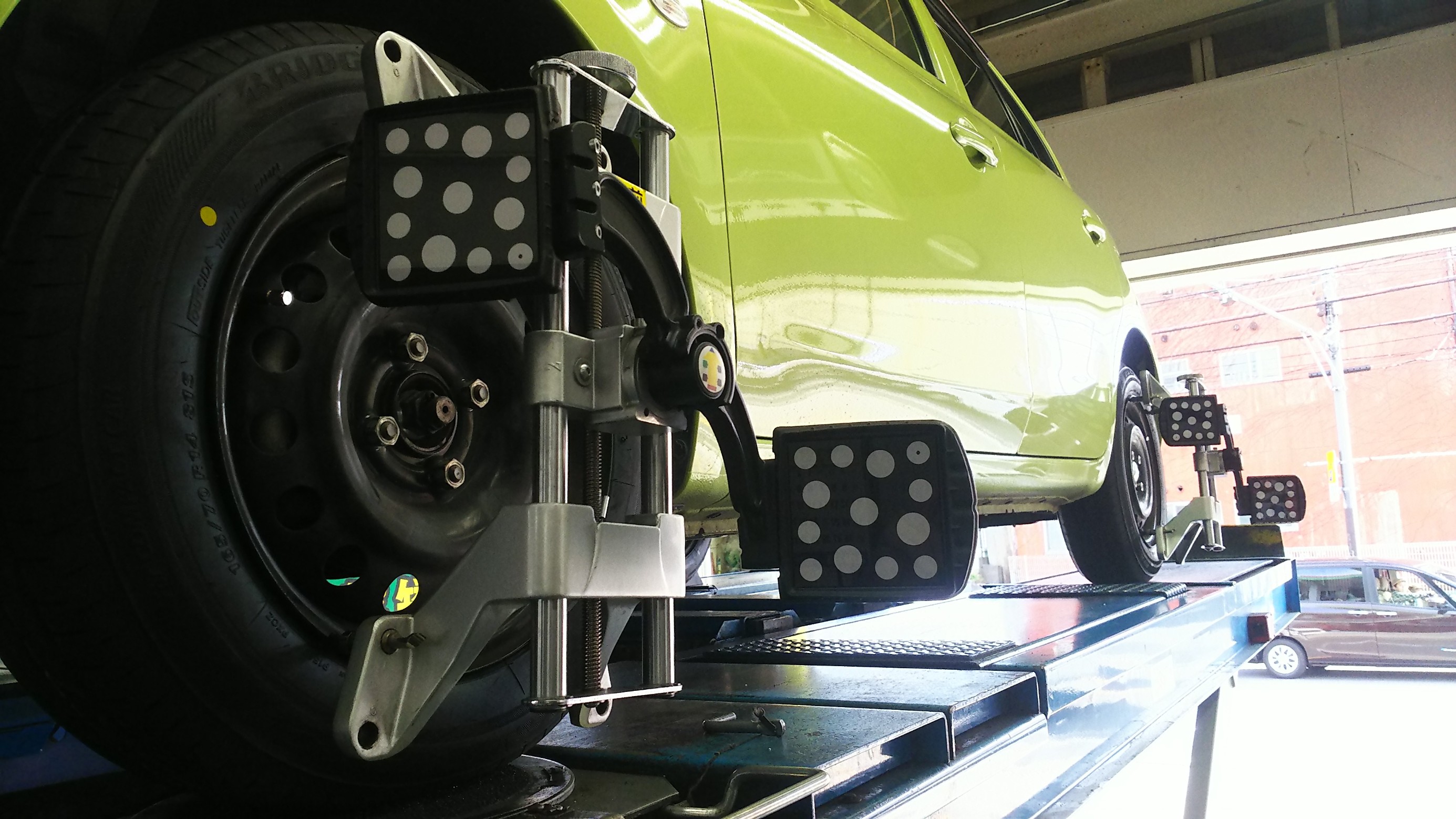 リフトで車を上げて下廻りと足回りを点検したところ異常は見られなくアライメント診断をしてみました。