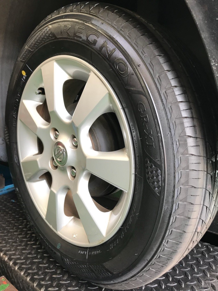 安価なタイヤを装着し、万が一性能に満足していただけなかった場合のことを考えるとやはり選択は「レグノ」でした。