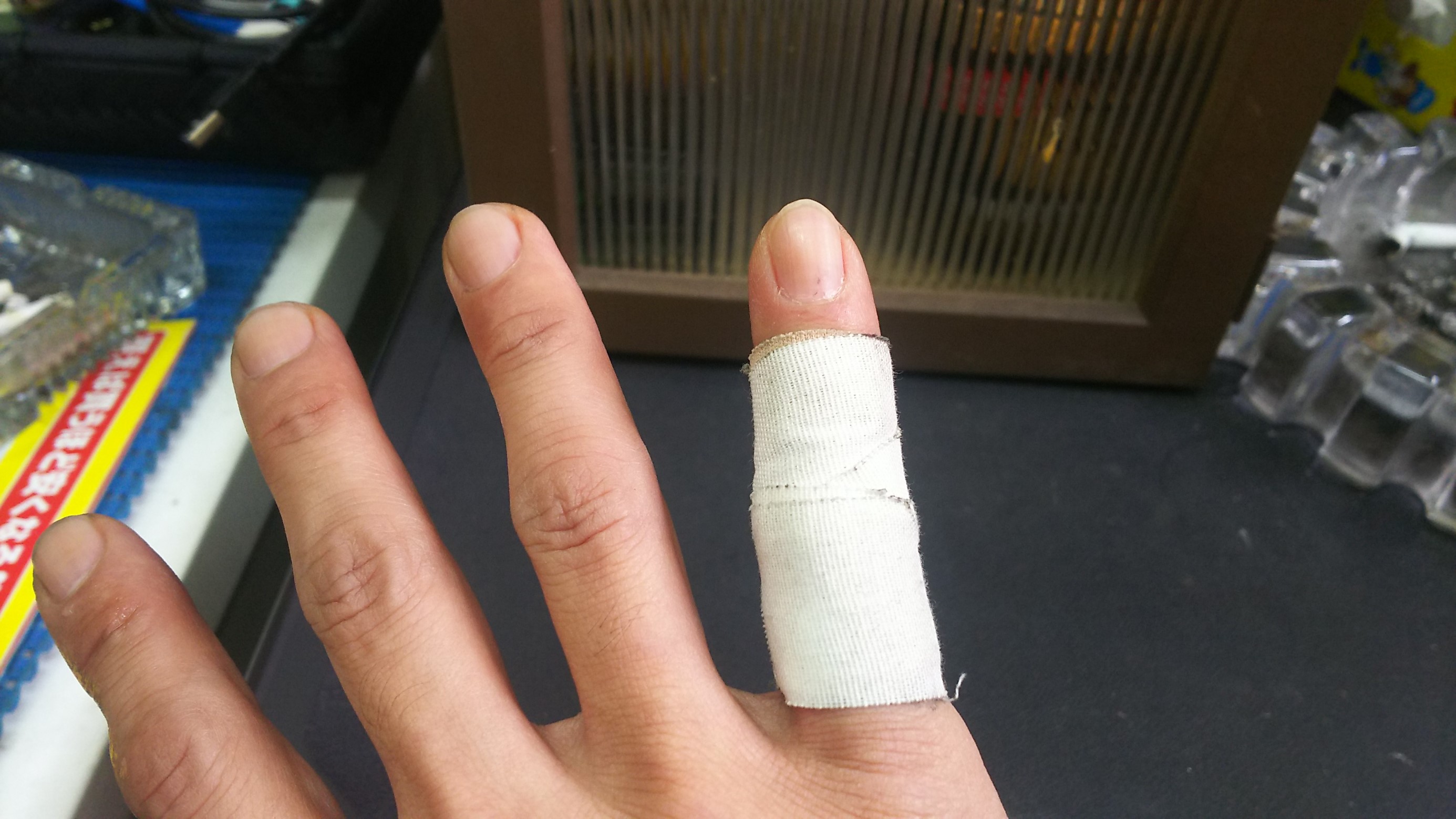 ちょっとした不注意から突き指をしてしまいました(;一_一)