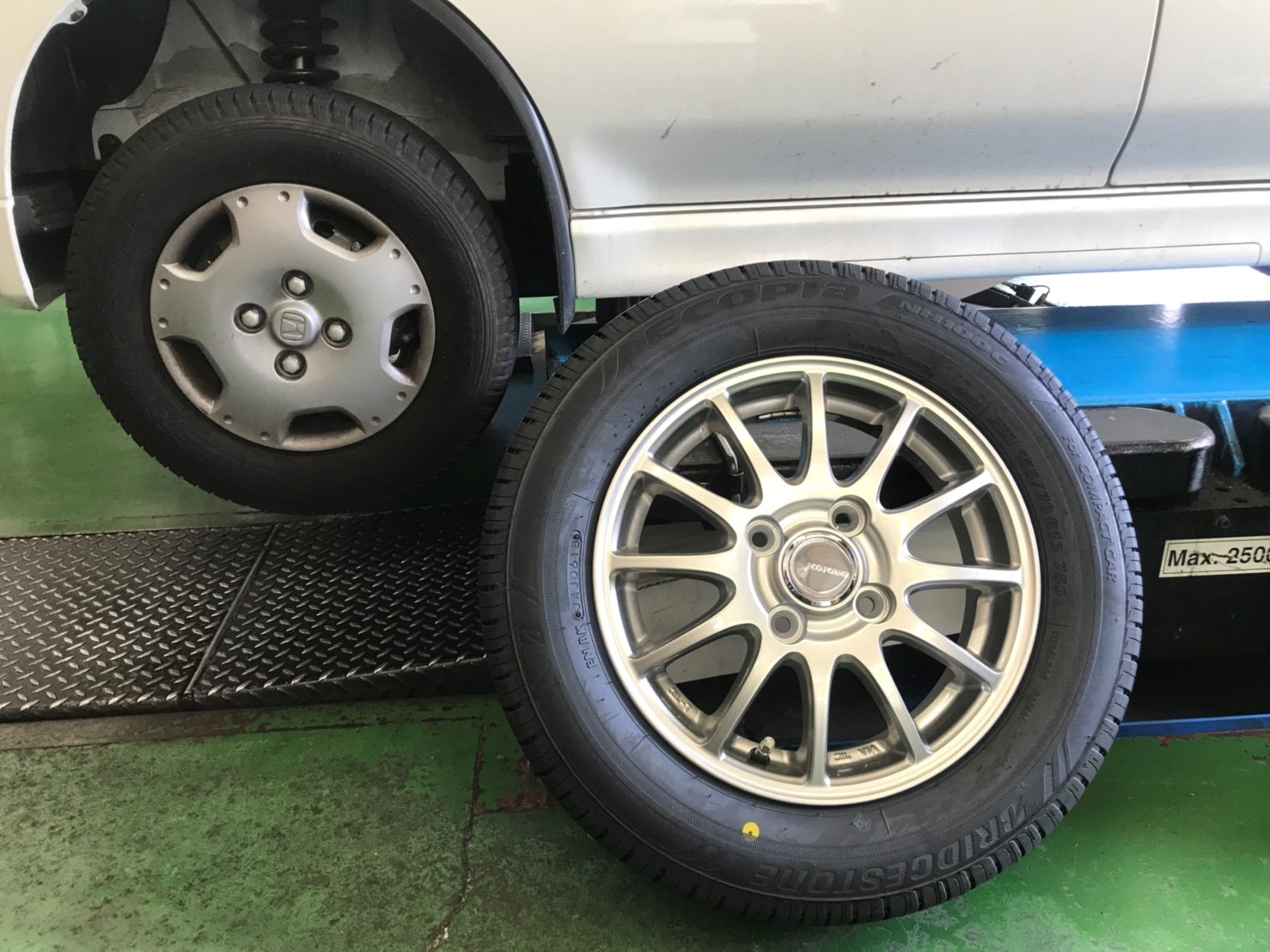 本日のご紹介はアルミホイール&タイヤセットの取付です。