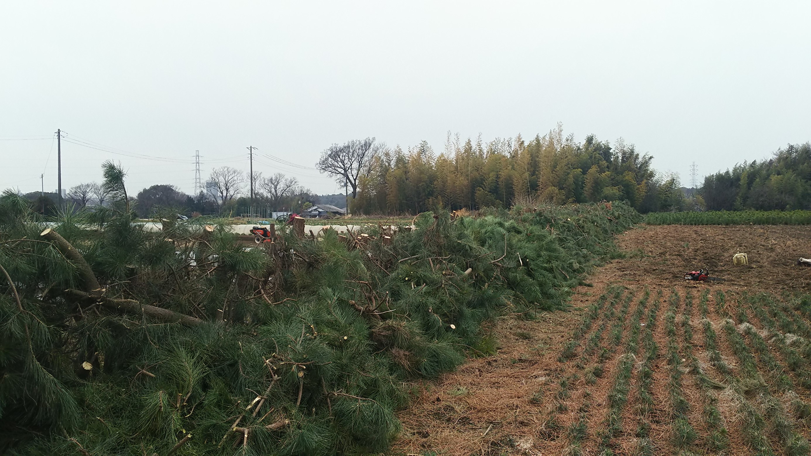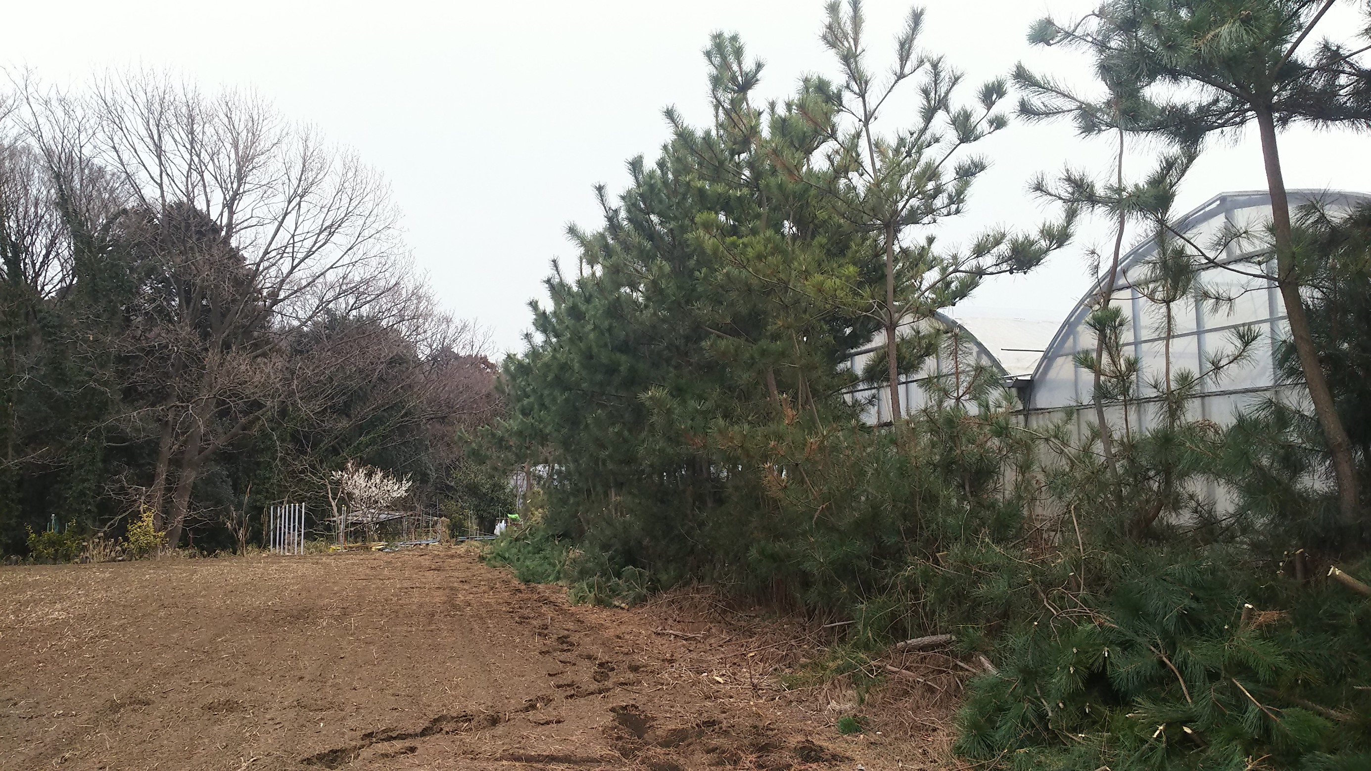 つい先日のお休みの事なのですが家の裏にある畑の堺にあるゴミ除けの為に生やしていた松の木がだいぶ大きくなり日陰を作ってしまいこのままで植えた松が育たないということで伐採を決行しました(; ・`д・´)