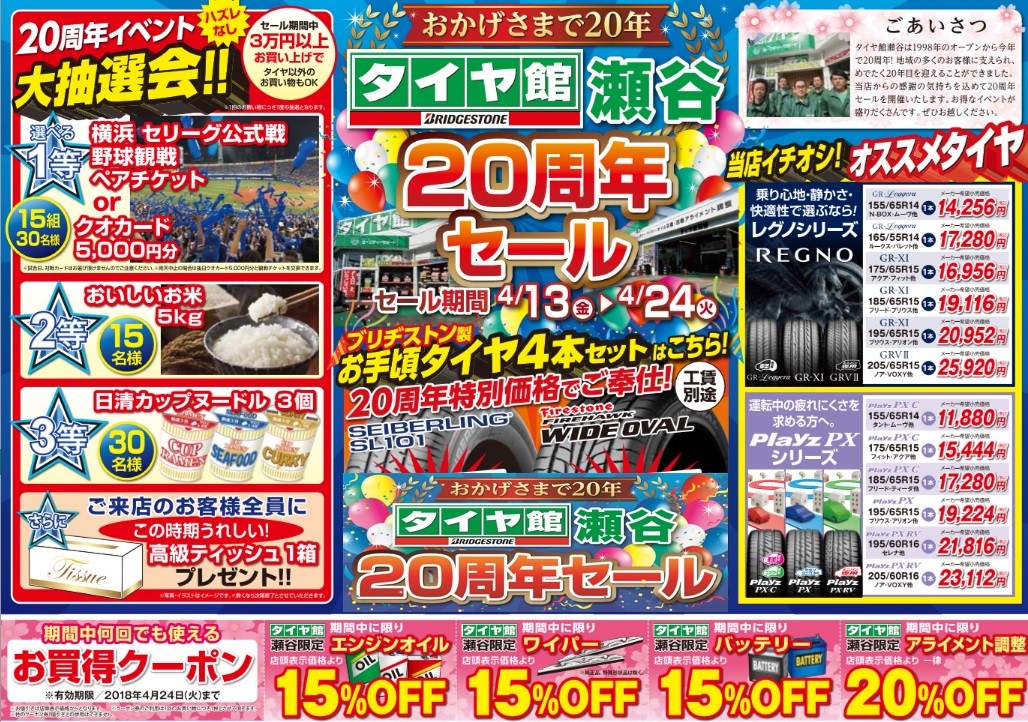タイヤ館瀬谷20周年セール 第2弾!! 開催中です!!
