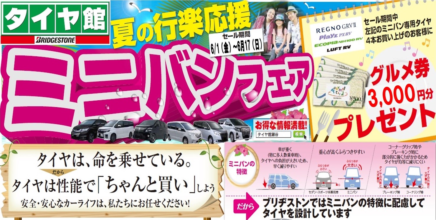 『ミニバン専用タイヤフェア』を開催いたします。