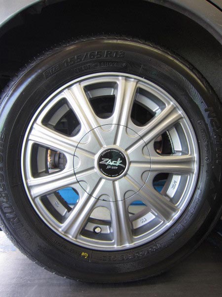 本日ekワゴンでご来店のお客様に13インチのアルミホイールとタイヤのセットを取付いたしました。