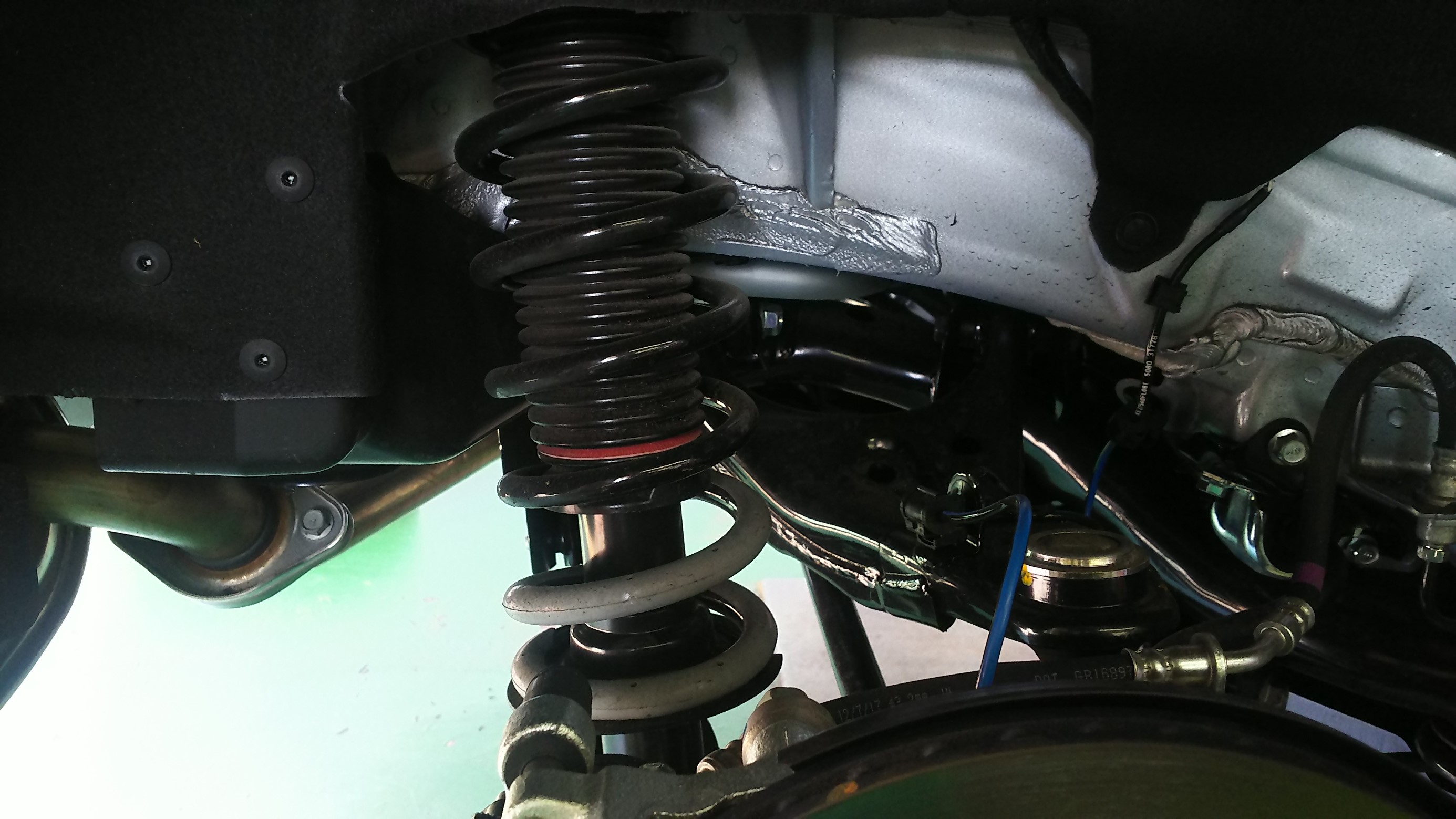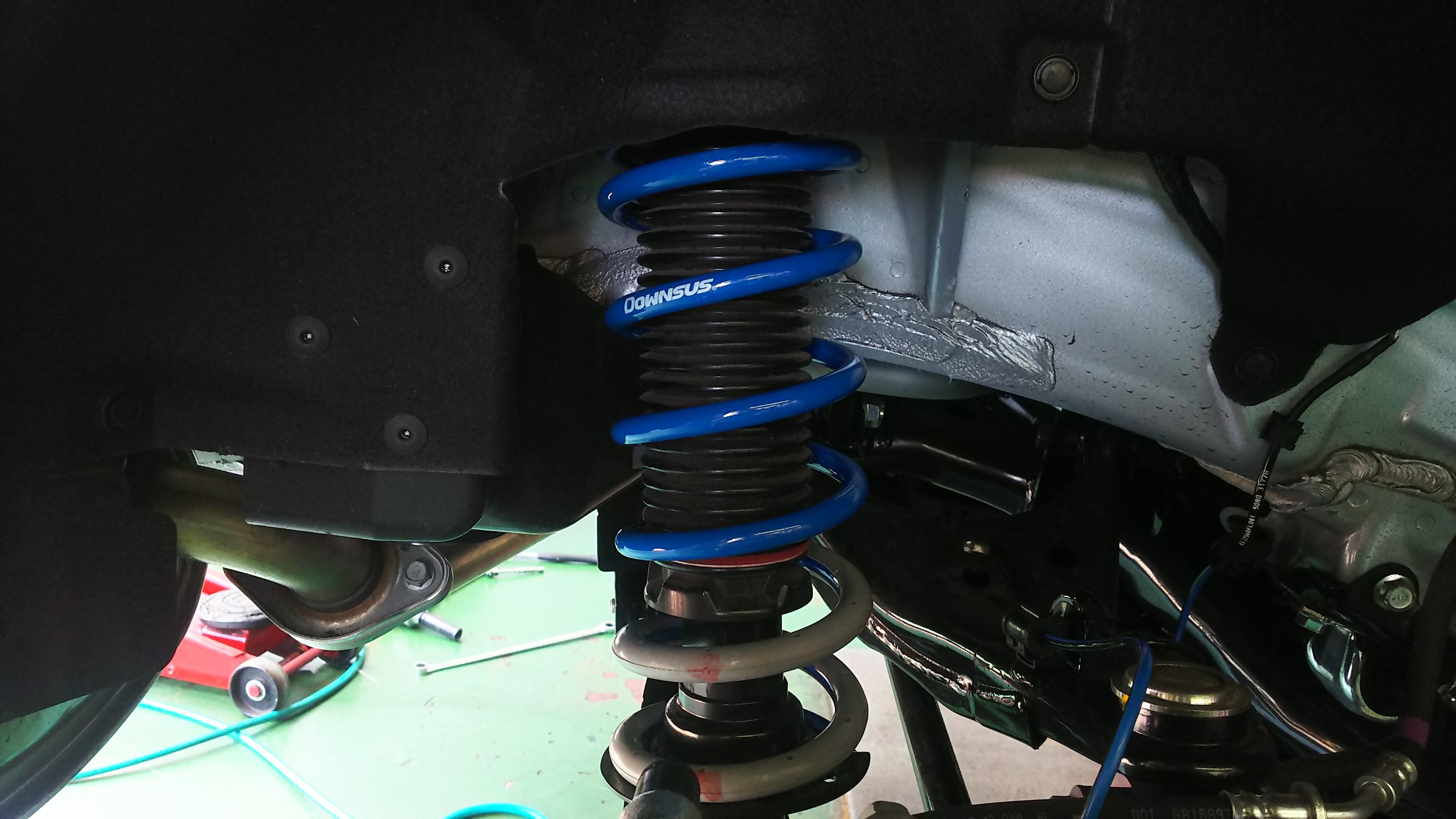 ダウンサスの取付なのでショックアブソーバーを外してバネを交換します。