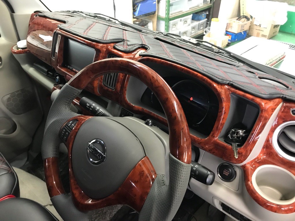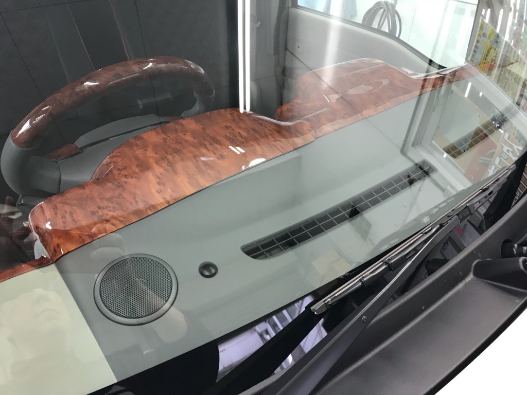 せっかく木目調のインテリアパネルでビシっと決まったものの、ダッシュボードの半分は純正の地味な色合いがそのままです。