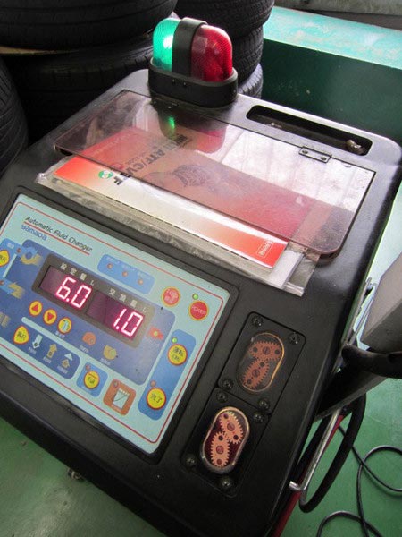 しかし!エンジンオイルと違い交換するためにはトルコンチェンジャーという専用の機械が必要です。当店ではその専用機械をきちんと完備しております。