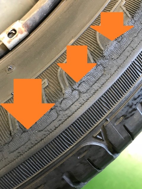 空気が減ってサイドの部分で走行した結果がこの状態。