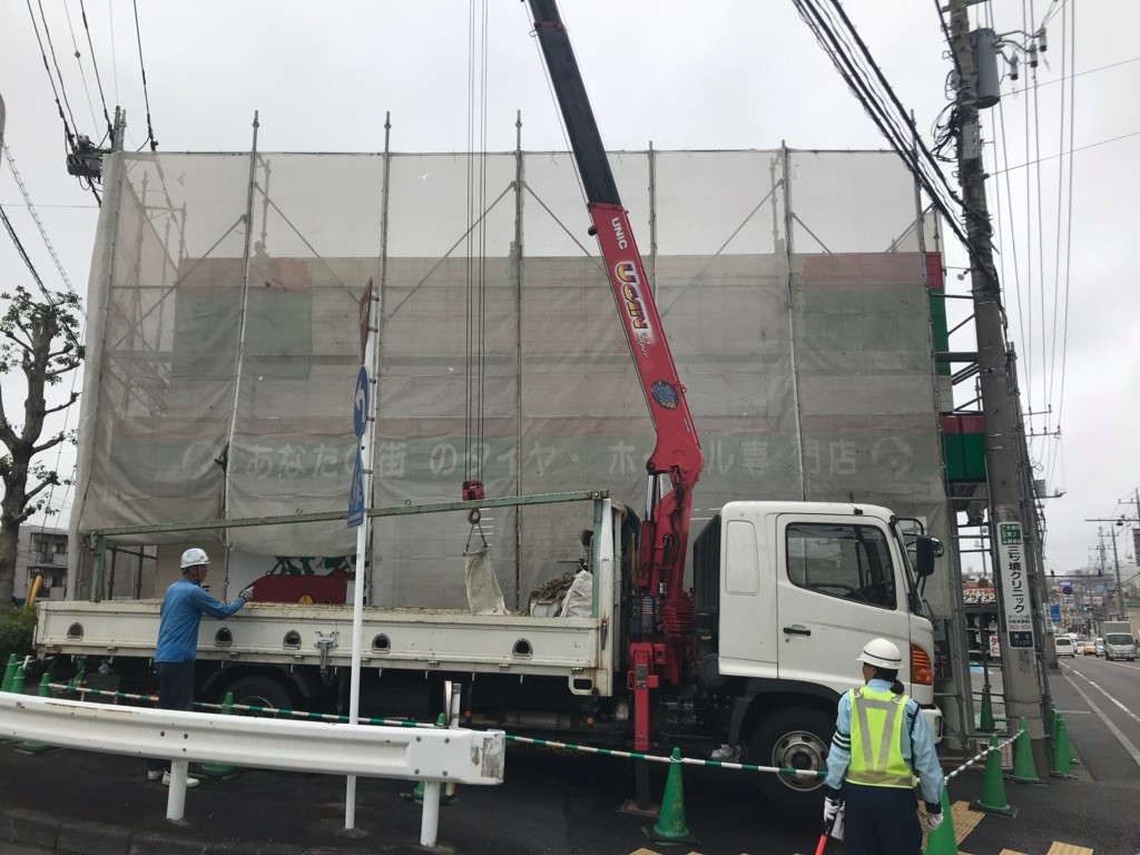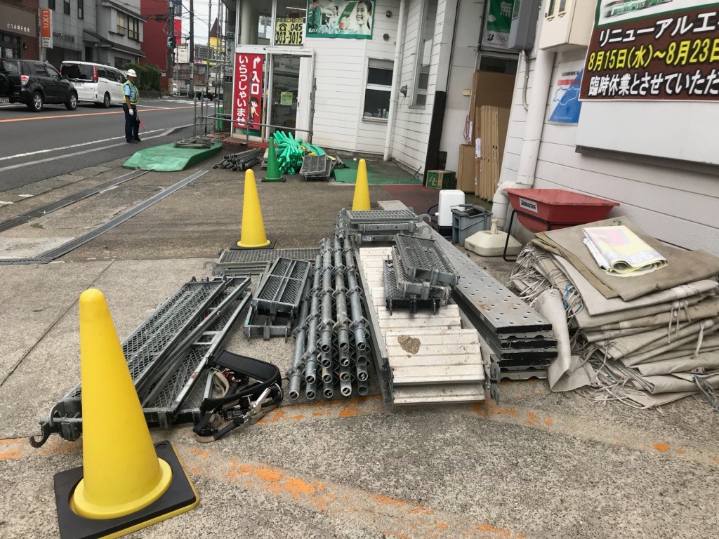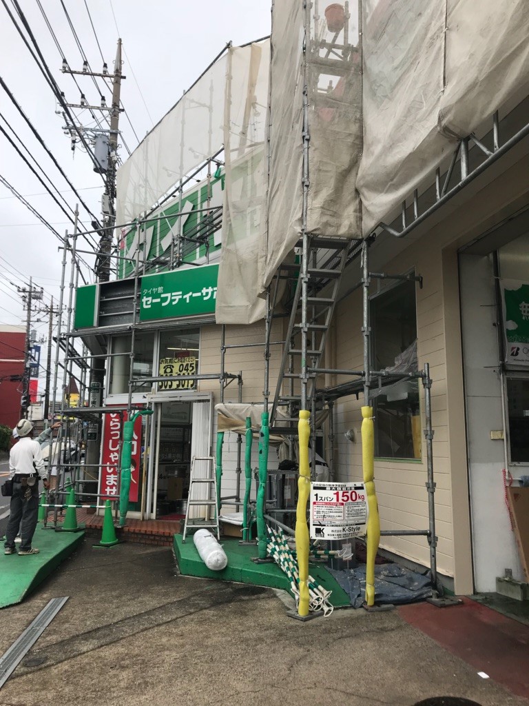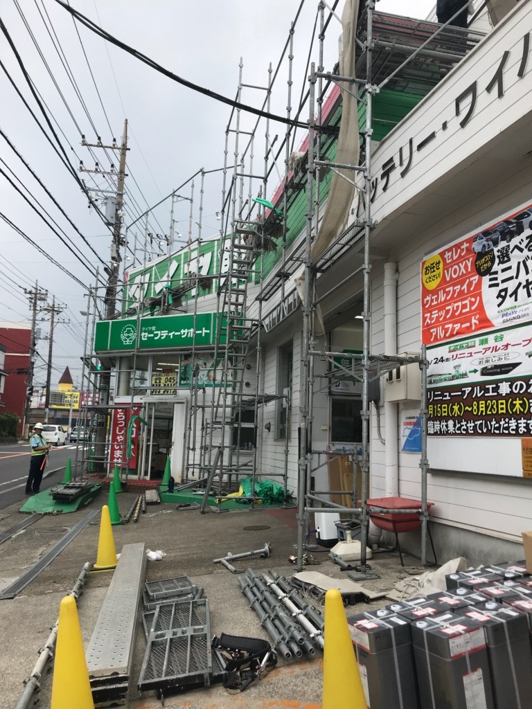リニューアル工事と言っても本格的な工事に入る前の準備でして、まずは高所作業のための「足場」が設置されました。