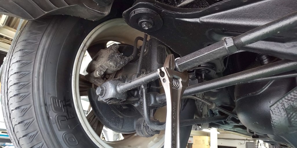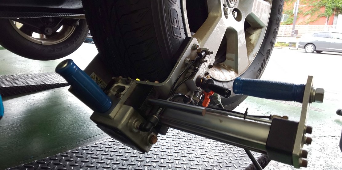 この車は前後のトー調整が出来ますので早速作業開始です。