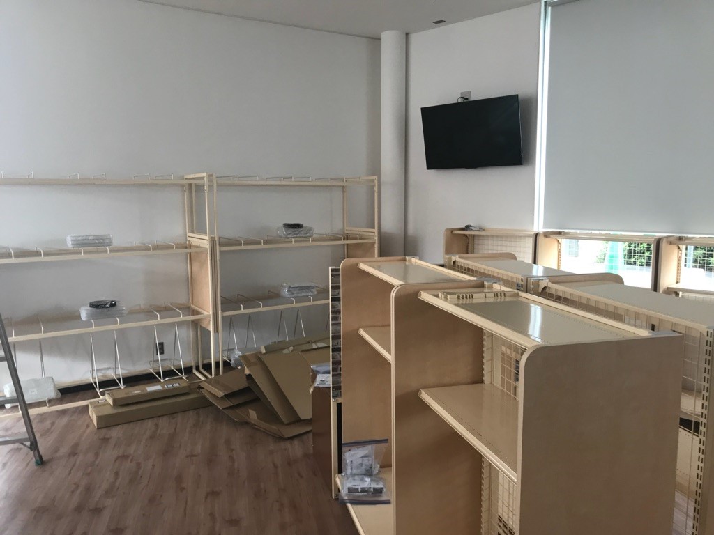 夕方には全ての什器が組み立てられ、少しだけお店らしくなってきました。
