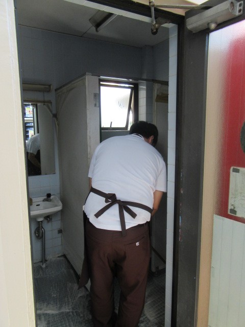 スタッフが使うトイレ掃除をしていました。