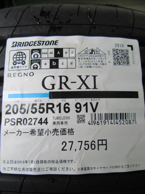 お取り付けしたタイヤは205/55R16です。
