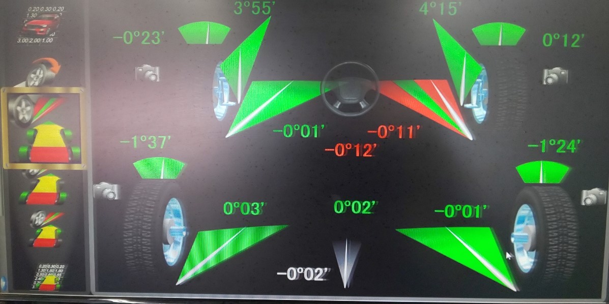 車のセンターがズレてハンドルをまっすぐにすると左に寄っていってしまうとのことで点検をさせていただきました。