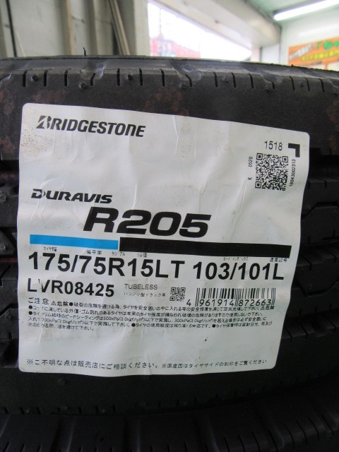 お取り付けしたタイヤはデュラビスR205、175/75R15です。
