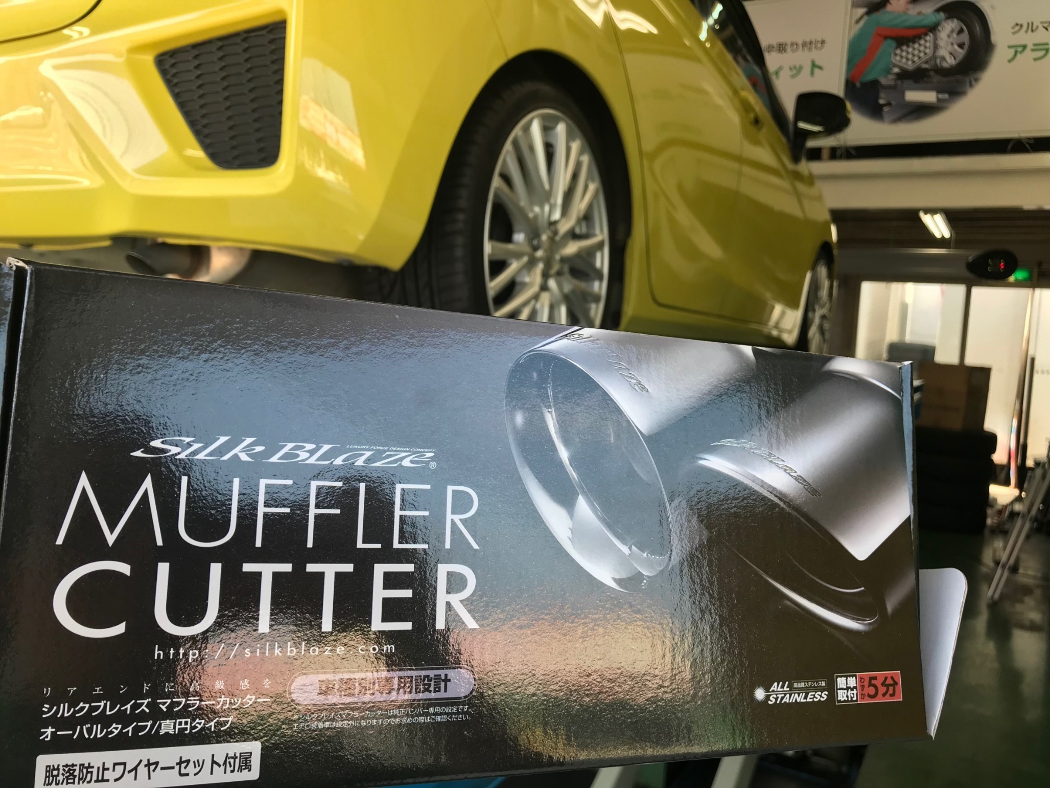 本日はHONDAのFitにマフラーカッターのお取り付けのご紹介です。