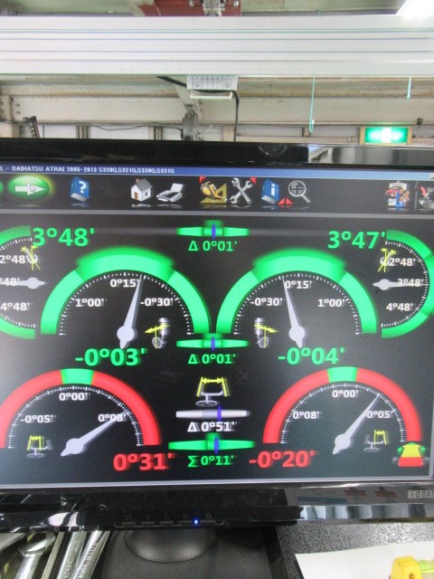 DAIHATSUのアトレーワゴンのアライメント作業のご紹介です。