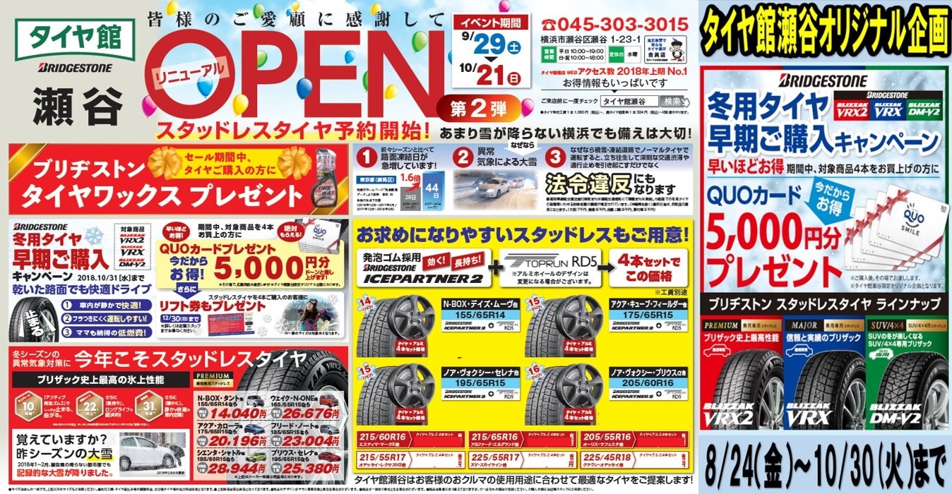 タイヤ館瀬谷 リニューアルオープンセール 第2弾 開催です!!
