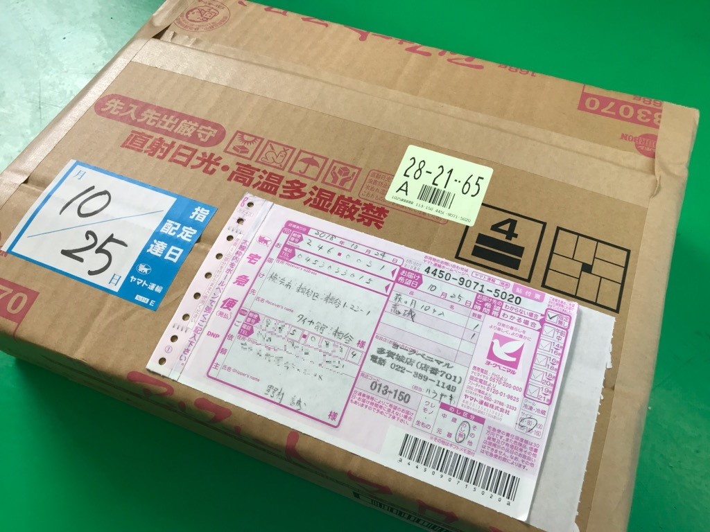 9月にタイヤ館瀬谷を退社し宮城へ凱旋帰国した野村さんからのお荷物でした。