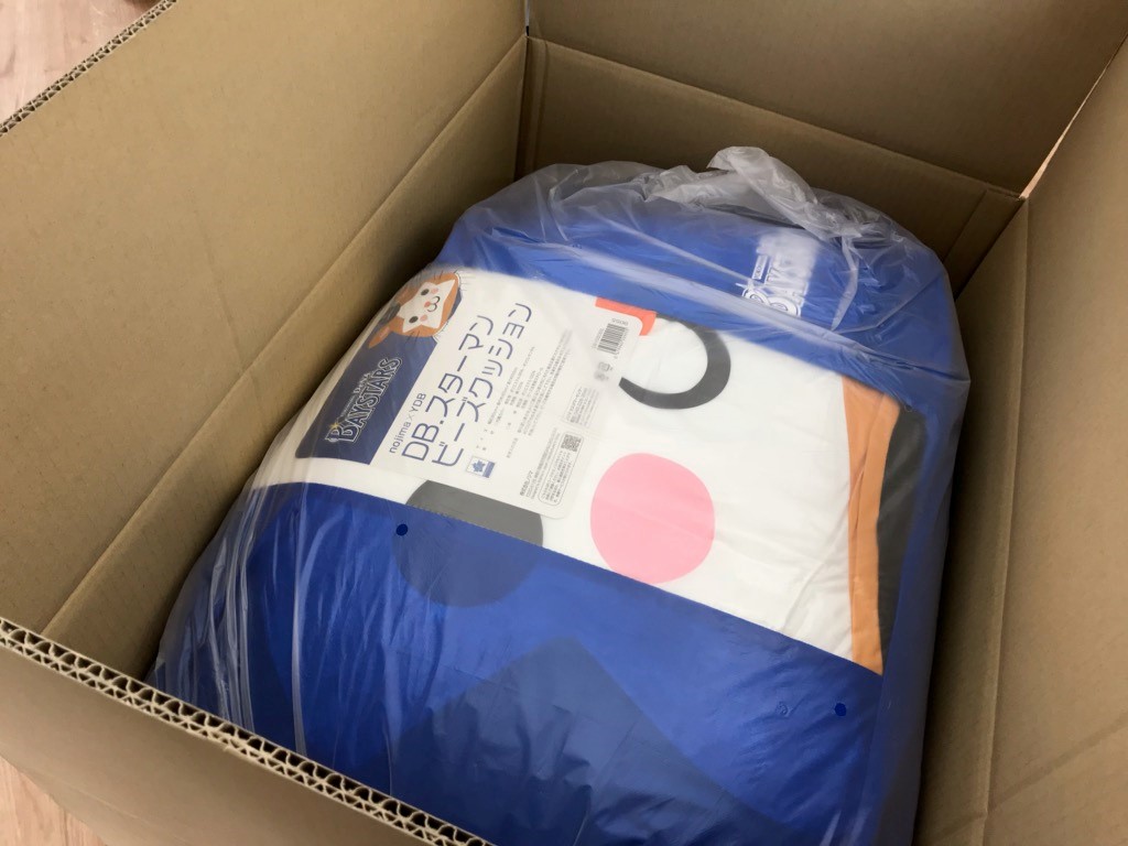 突然登場したこの大きなビーズクッションに、スタッフ一同「呆れ顔」でした。