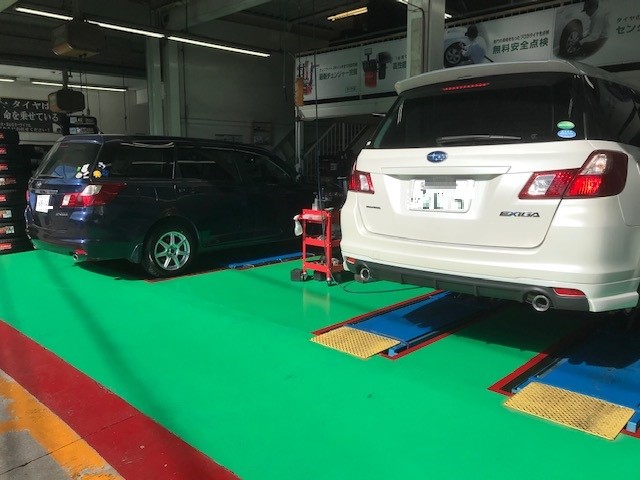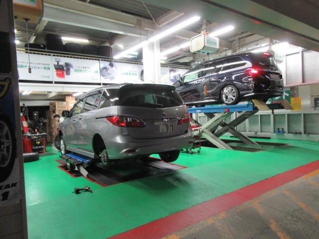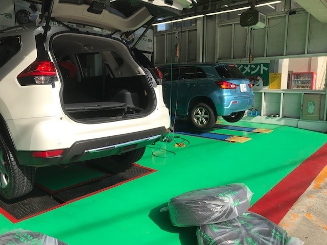 スタッドレスの装着・オイル交換・アライメント調整等の作業が夜まで続きました。