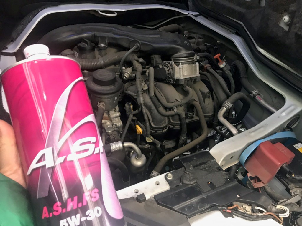 ハイエースのお客様に「A.S.H.」のオイルをお試しいただきました。
