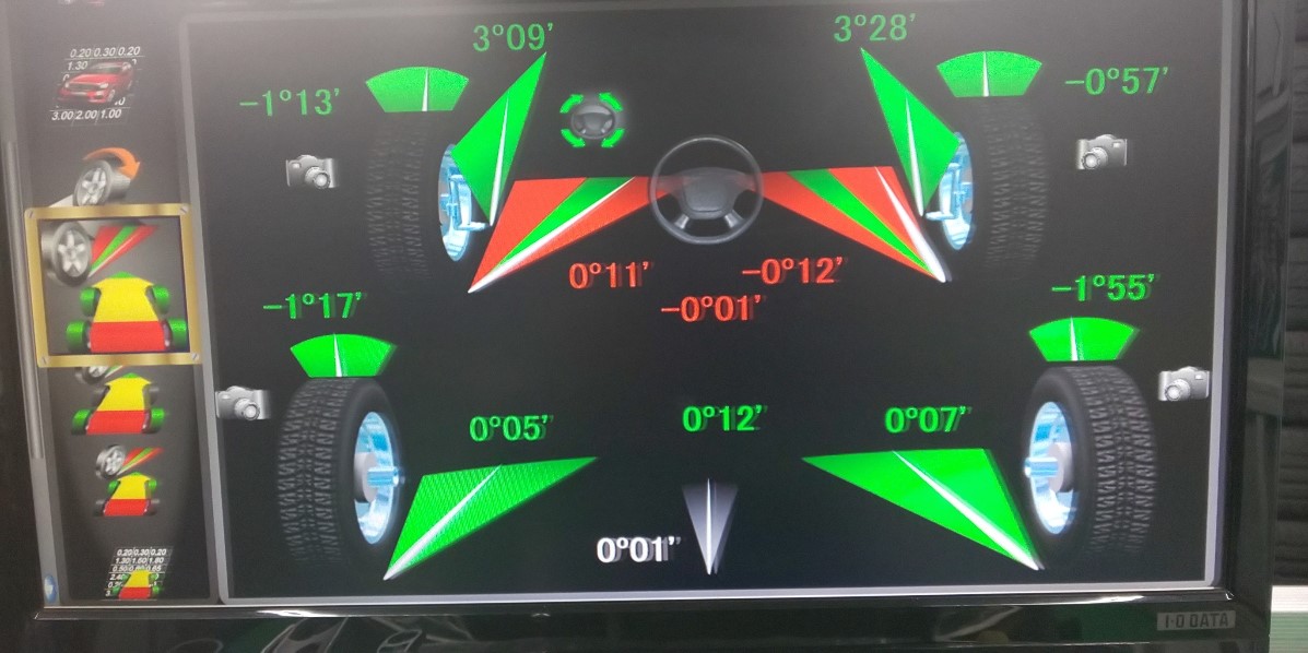 先日タイヤ交換をさせていただいたお客様で後日のアライメント調整となりました。
