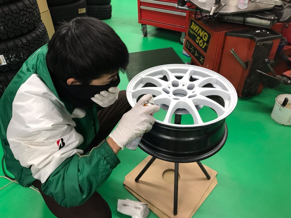 塗装が剥がれ傷がついて使えなくなったアルミホイールをスクラップ置き場から持ってきて、ホイールの再塗装をしております。