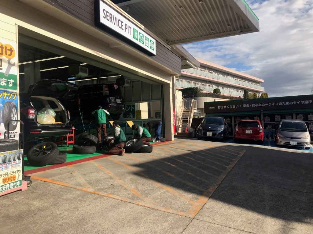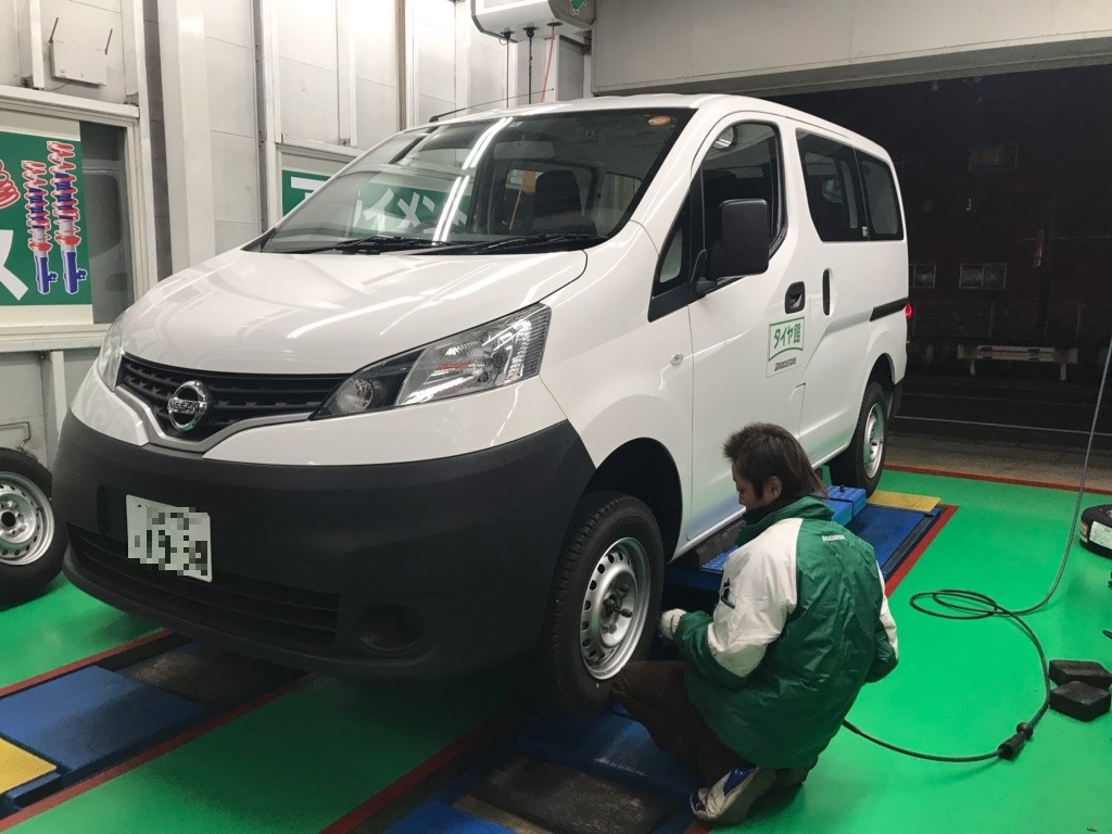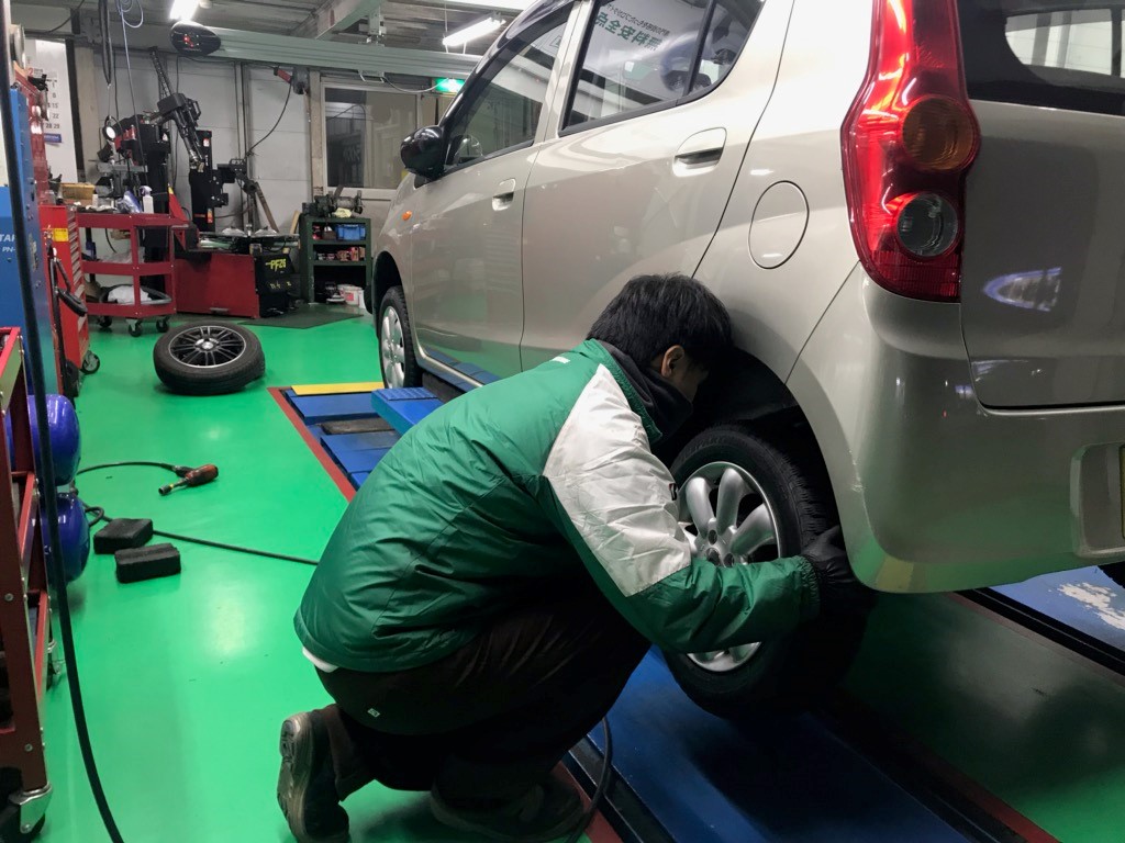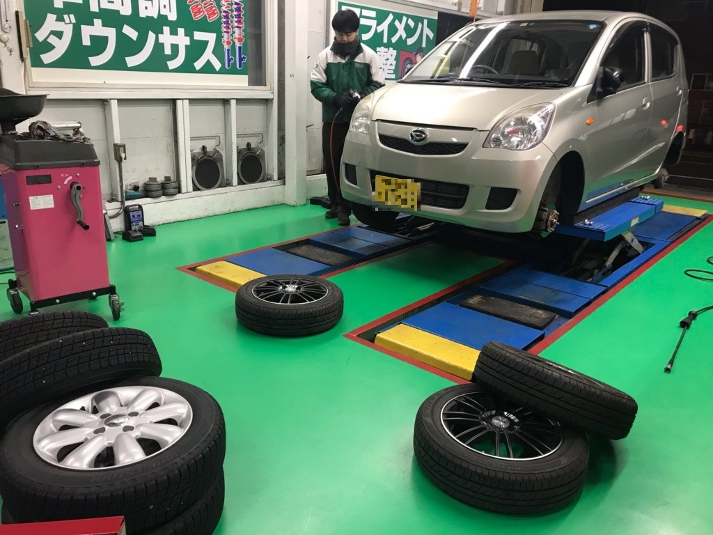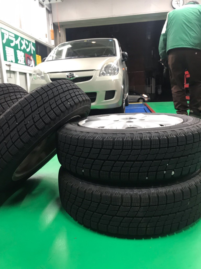 当店の代車、社用車のスタッドレスタイヤへの履き替え作業です。