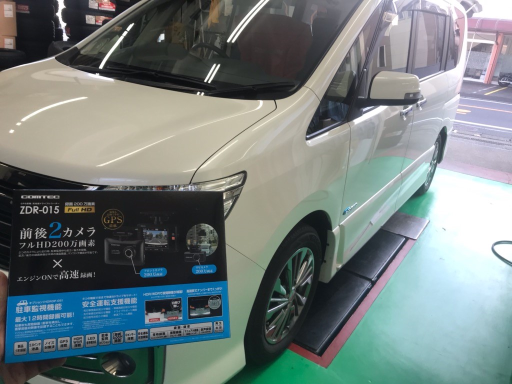 セレナ コムテックドライブレコーダー HDR-015 前後カメラ 取付