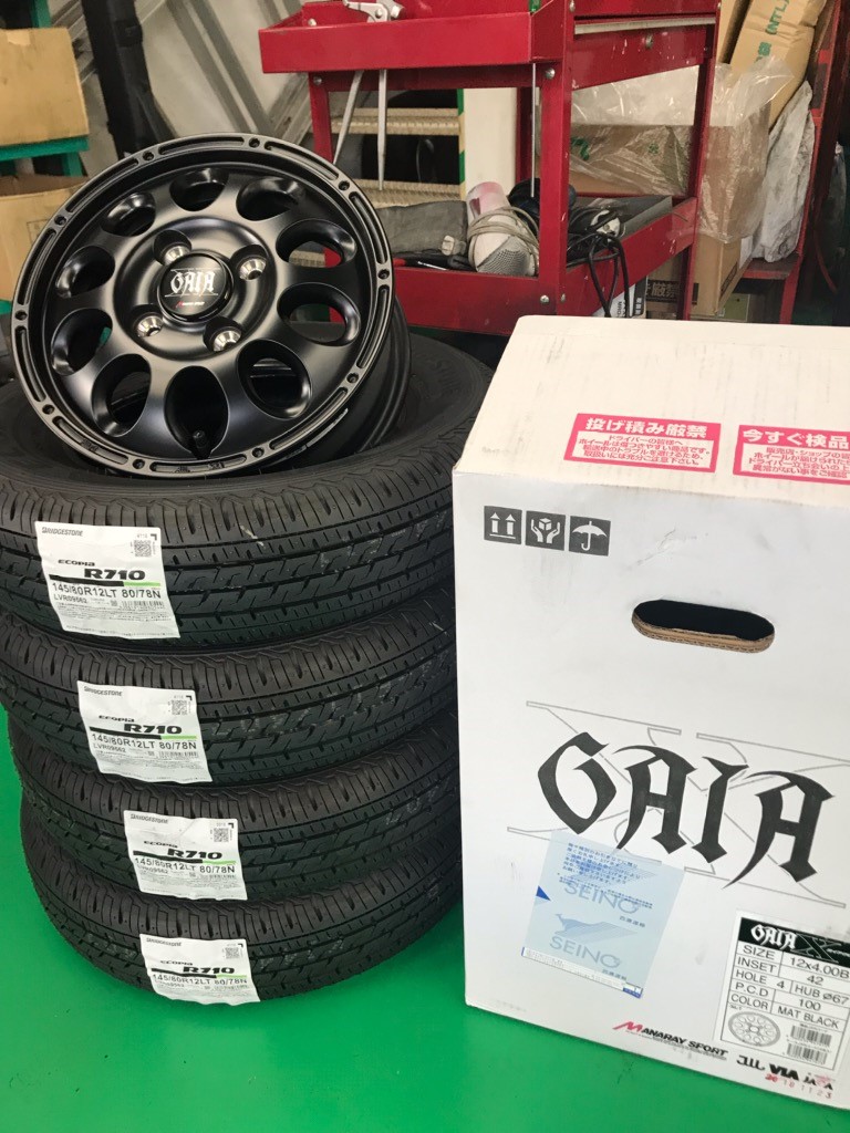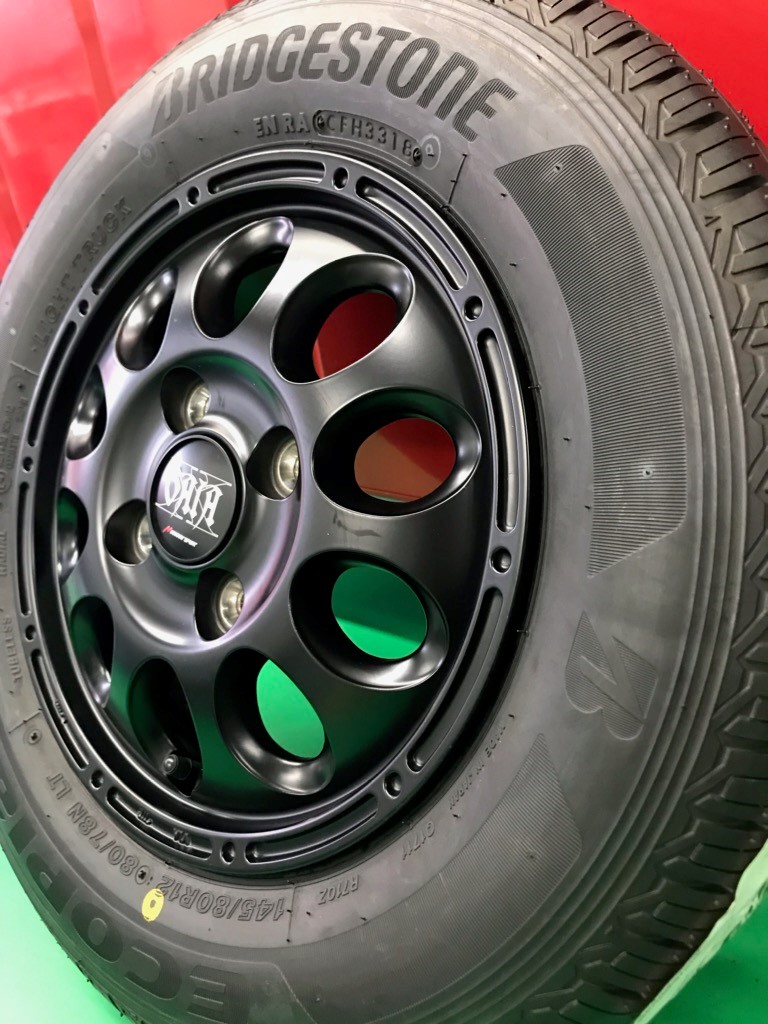軽トラックに12インチのアルミホイールとタイヤのセットを取り付けしました。