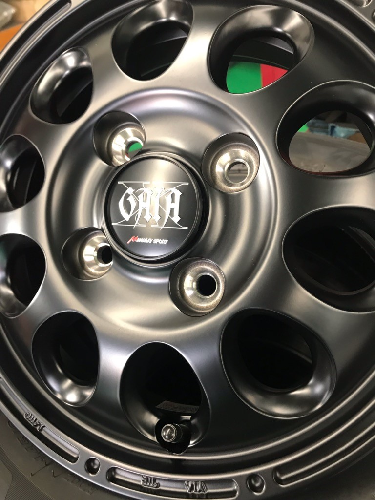 取り付けたアルミホイールはマルカサービスのオリジナル商品「ガイア クロス」です。