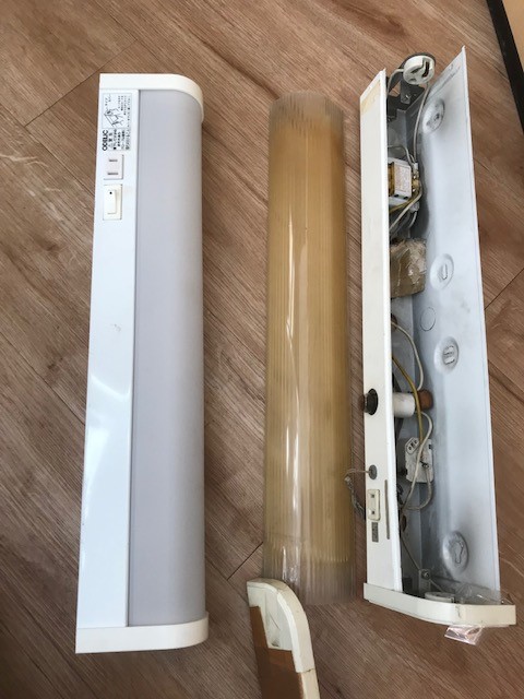 この古い蛍光灯は手で押さえてないと外れてしまいます。