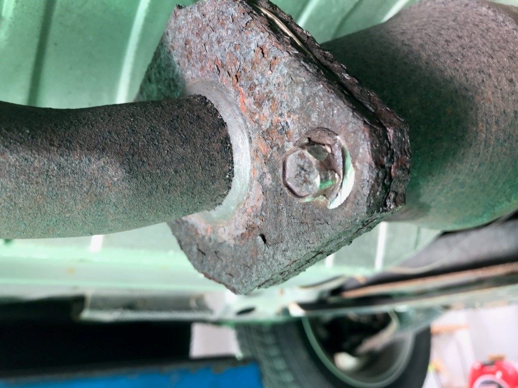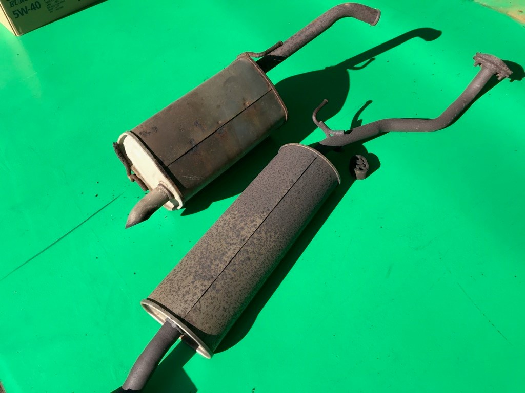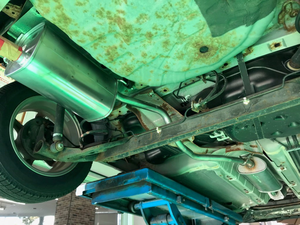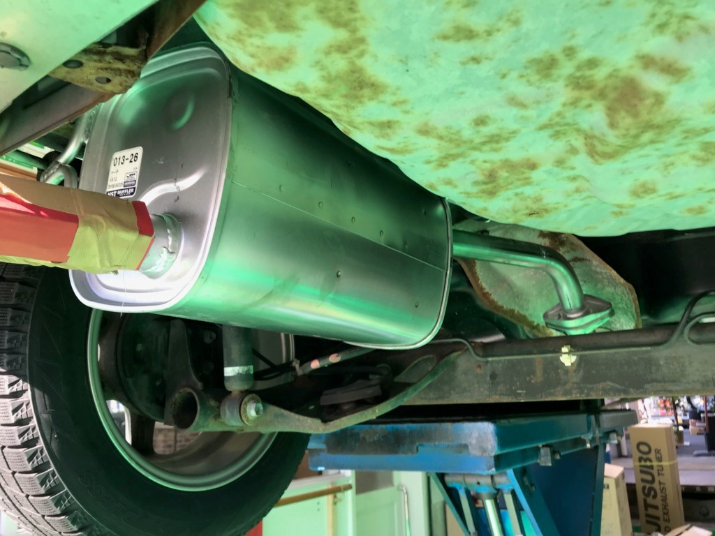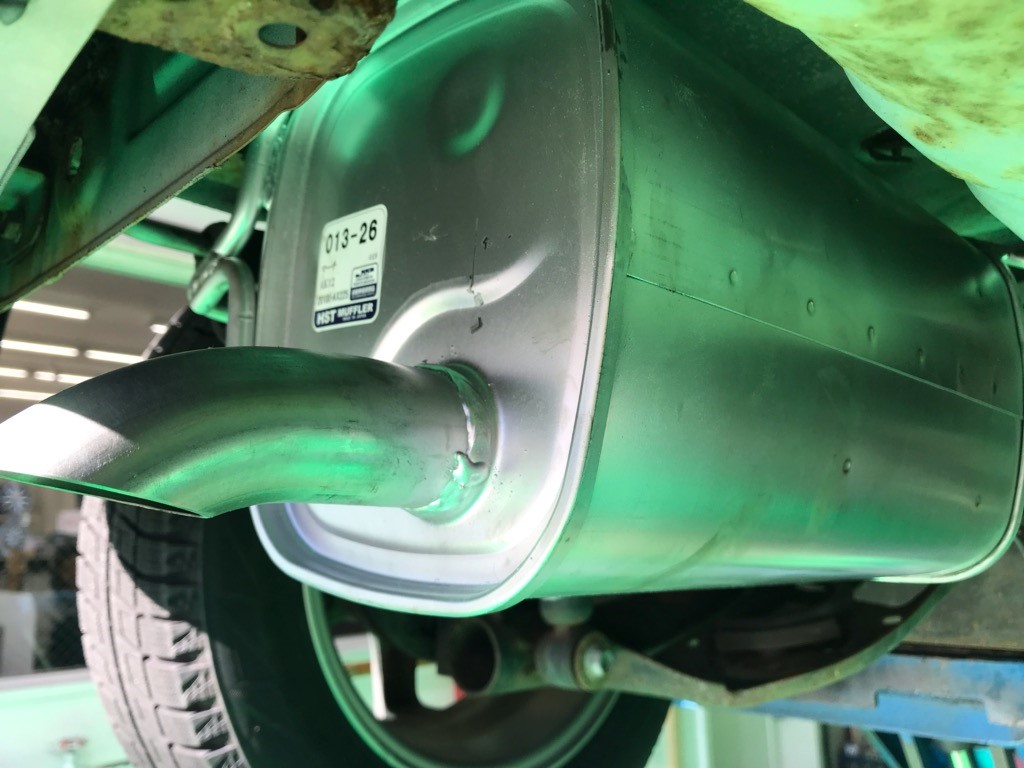 このような状態で車を走らせるわけにはいきませんので、すぐに純正のマフラーを取り寄せしてお取替えさせていただきました。