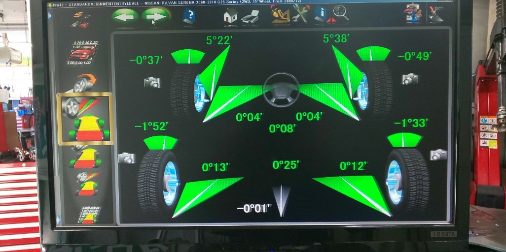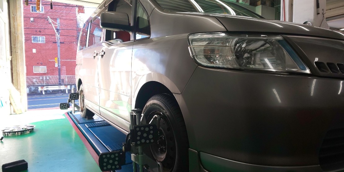 タイヤや足回りをチェックしたのですが特に異常もなくアライメントもみてみようということになりました。