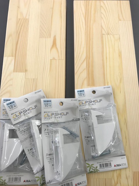 展示用にピッタリな板と金具がありましたので,早速レジに持っていき購入。
