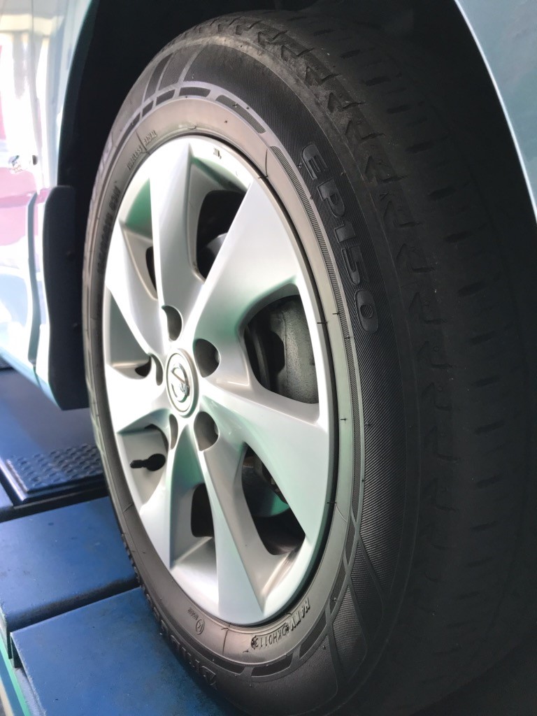 タイヤに極度の偏摩耗は見られませんでしたが、せっかく取り付けたGRVⅡを一日でもしっかりと長く使っていただく為には必要な作業です。