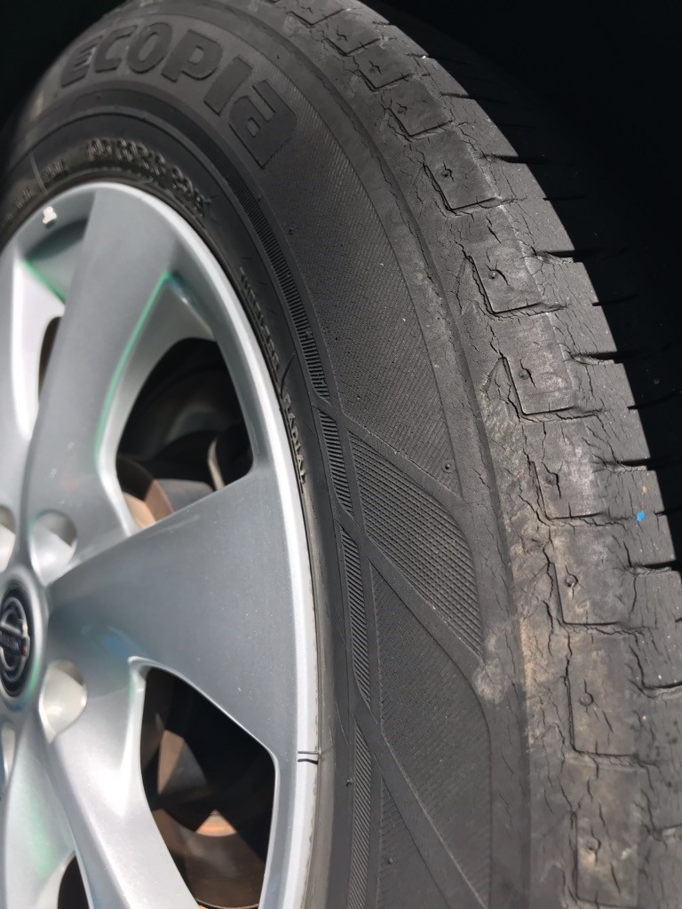 新車で装着されているタイヤはすり減り劣化も見られました。