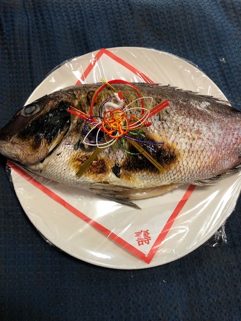 赤飯にお吸物、鯛、漬物、煮物、なます、をウチの奥さんが作りました。