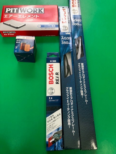 行った作業はワイパー交換、オイル交換、エアエレメント交換です。