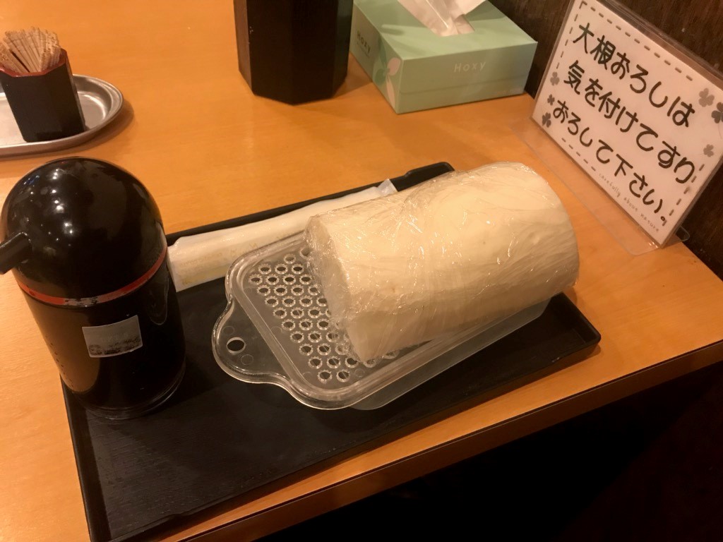 食券を渡すとこちらの大根とおろし金を渡されます。