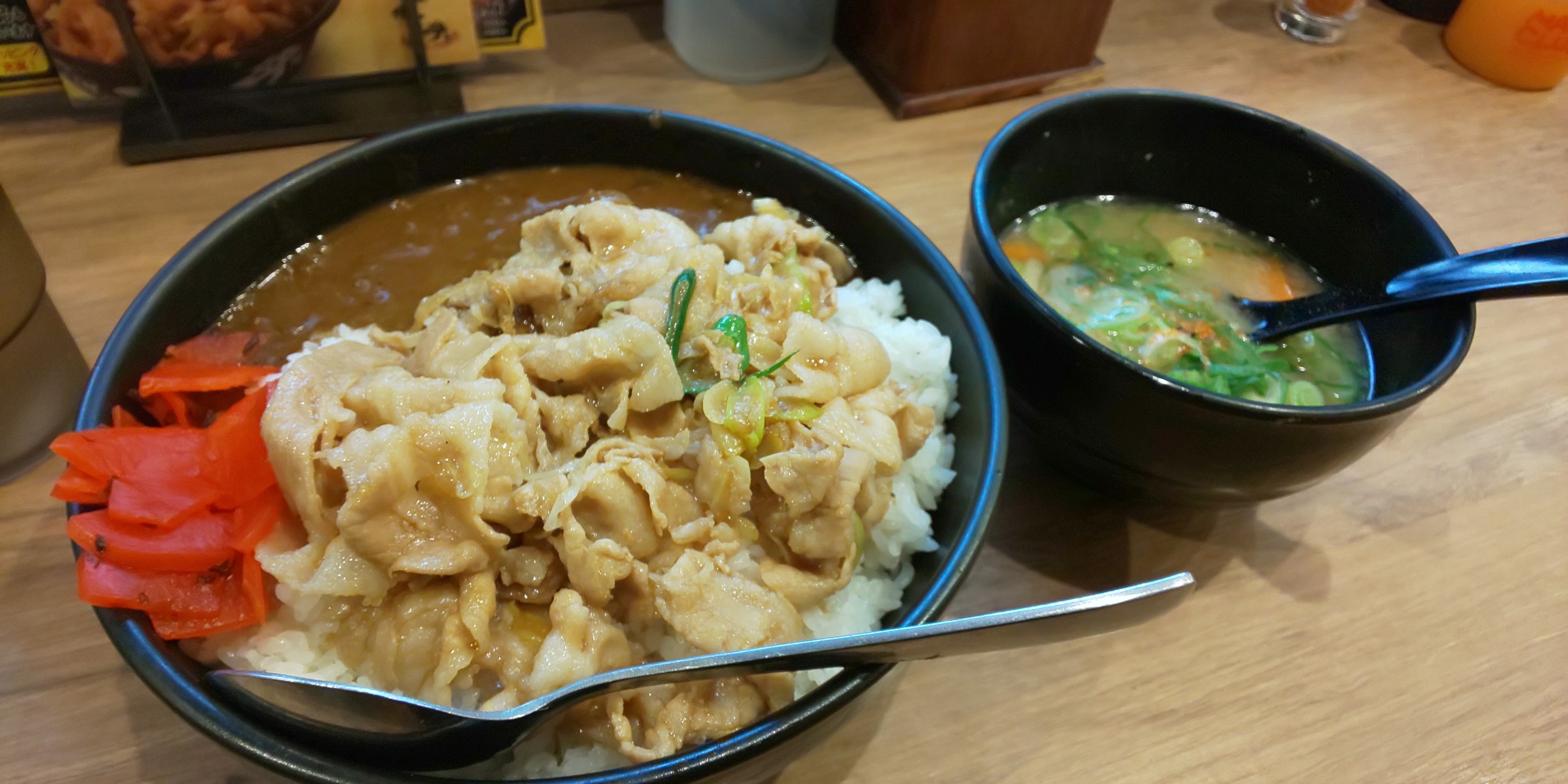 今回自分が選んだのはすた丼のカレー肉増し飯増しです(*≧∀≦*)