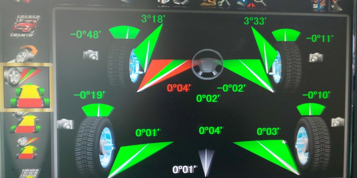 タイヤを交換されてからということでしたのでアライメントの診断をさせていただきました。