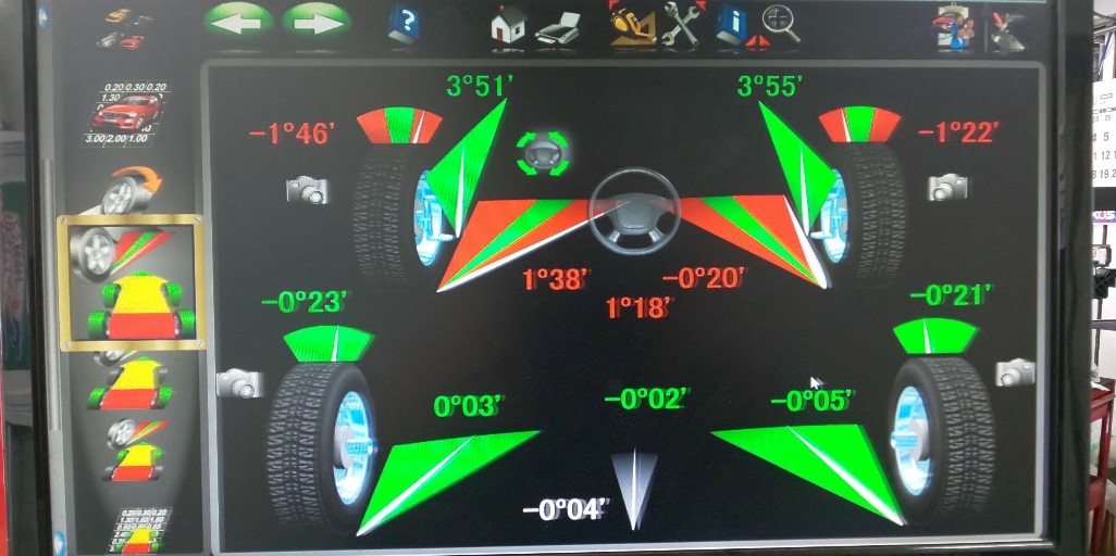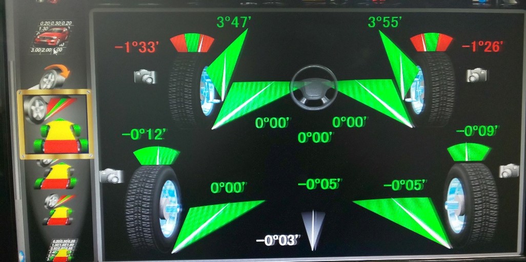 現在使われているタイヤは偏摩耗しておりますので、タイヤを新品に変えたときにもう一度アライメント調整をされることをお勧めさせていただきました。
