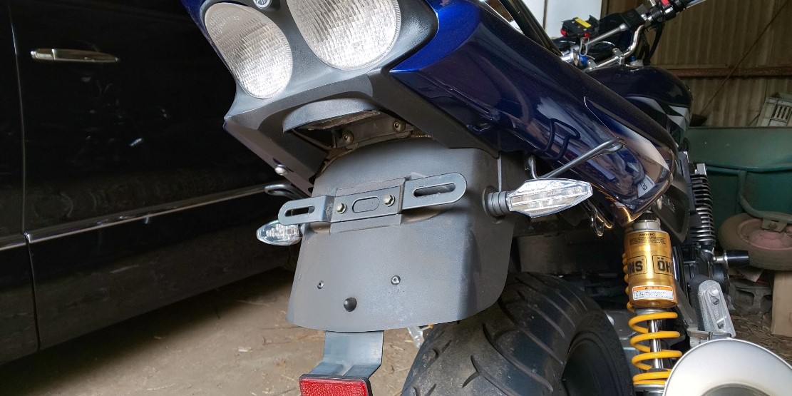 ナンバーを取り付けるのですがステーがはみ出さないように加工して取付です(*´▽`*)